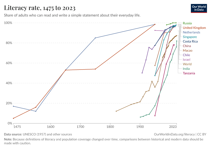 Literacy rateLong-run estimates collated from multiple sources by Our World in Data
