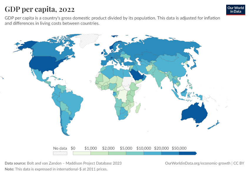 GDP per capitaLong-run estimates from the Maddison Project Database
