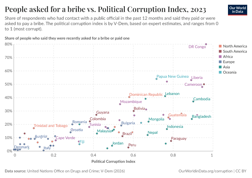 Bastian Herre, Veronika Samborska, and Esteban Ortiz-Ospina (2016) - “Corruption” Published online at OurWorldinData.org. Retrieved from: 'https://bespoke-income-plots.owid.pages.dev/corruption' [Online Resource]BibTeX citation