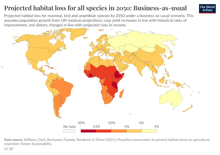 Explore future projections of species' habitats under different agricultural interventions.