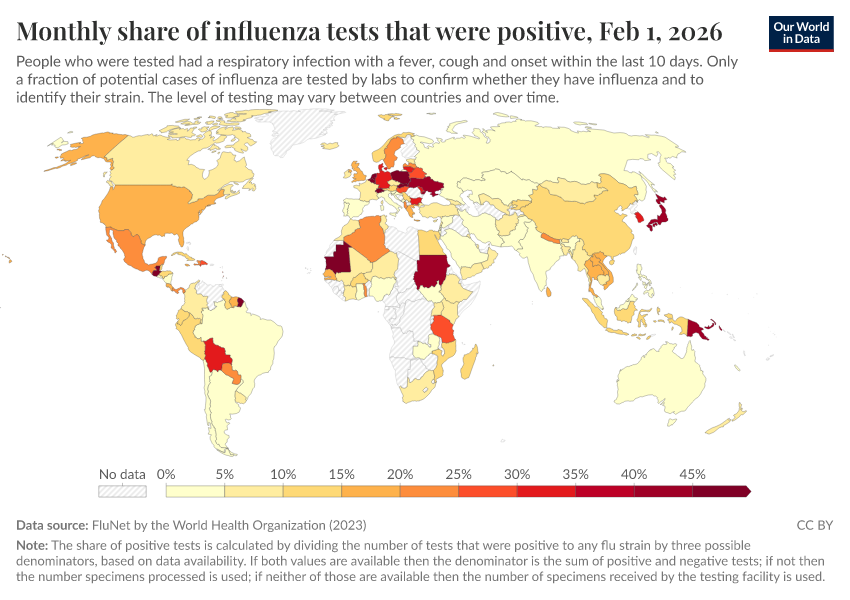 Explore global data produced by the World Health Organization on influenza symptoms and cases.