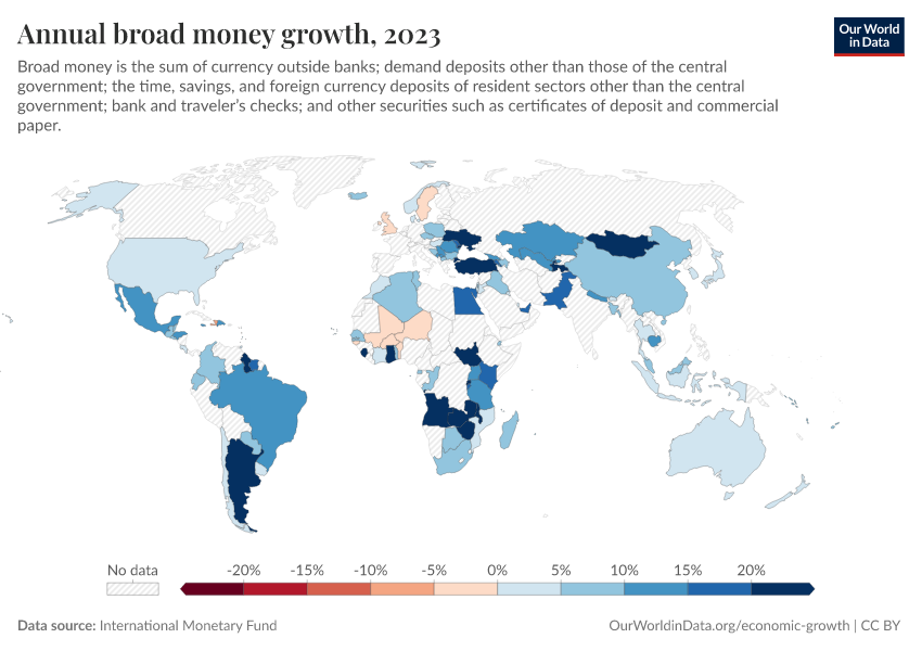“Data Page: Annual broad money growth”. Our World in Data (2026). Data adapted from International Monetary Fund. Retrieved from https://bespoke-income-plots.owid.pages.dev/grapher/annual-broad-money-growth [online resource]How to cite this data