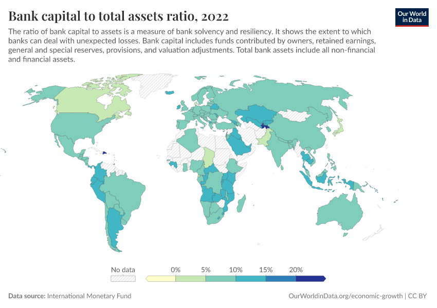 “Data Page: Bank capital to total assets ratio”. Our World in Data (2026). Data adapted from International Monetary Fund. Retrieved from https://bespoke-income-plots.owid.pages.dev/grapher/bank-capital-to-total-assets-ratio [online resource]How to cite this data