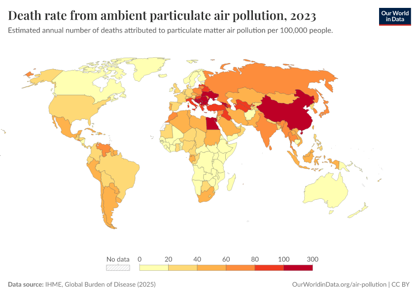 IHME, Global Burden of Disease (2025) – with major processing by Our World in Data. “Death rate from ambient particulate air pollution” [dataset]. IHME, Global Burden of Disease, “Global Burden of Disease - Risk Factors - Deaths” [original data]. Retrieved March 12, 2026 from https://bespoke-income-plots.owid.pages.dev/grapher/death-rate-from-ambient-particulate-air-pollution