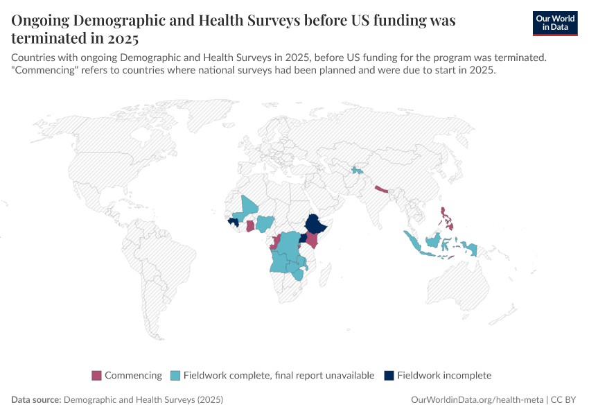 Ongoing Demographic and Health Surveys before US funding was terminated in 2025