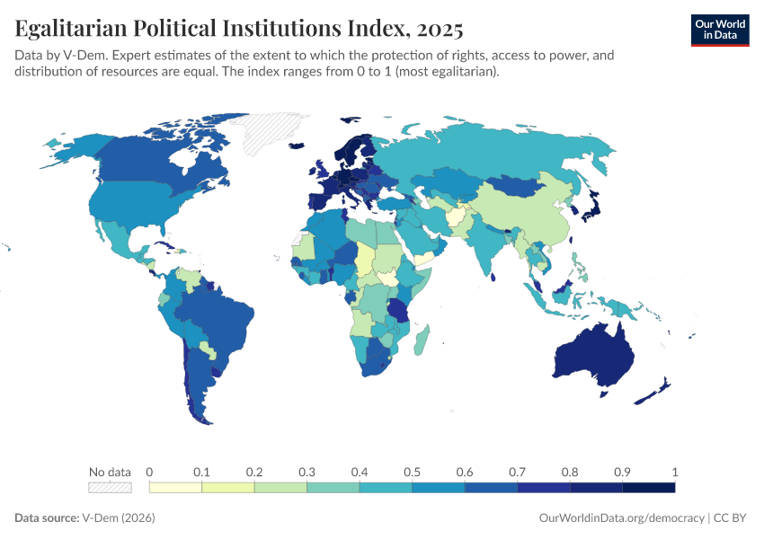 V-Dem (2025) – processed by Our World in Data. “Egalitarian political institutions index – V-Dem” [dataset]. V-Dem, “Democracy report v15” [original data]. Retrieved March 12, 2026 from https://bespoke-income-plots.owid.pages.dev/grapher/egalitarian-political-institutions-index