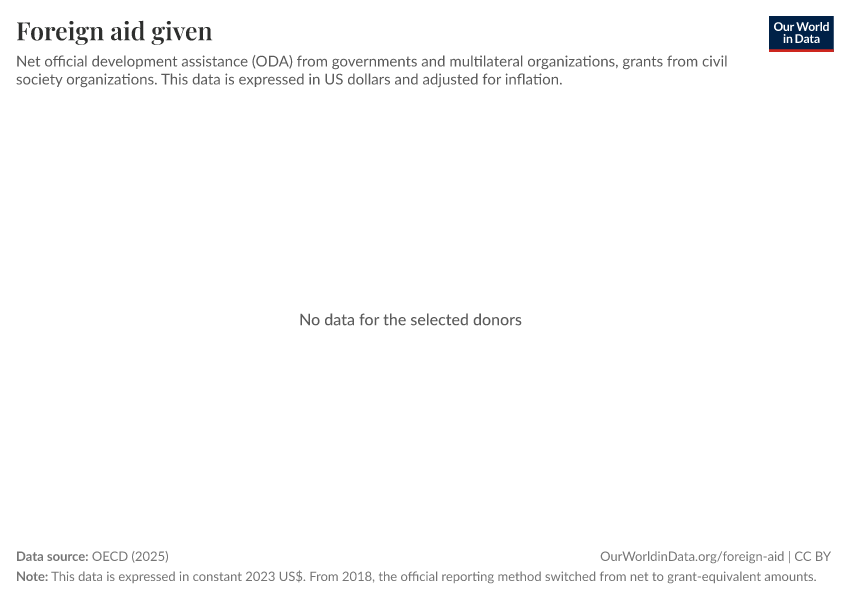 “Data Page: Foreign aid given”, part of the following publication: Bastian Herre, Pablo Arriagada, Simon van Teutem, and Hannah Ritchie (2024) - “Foreign Aid”. Data adapted from OECD. Retrieved from https://bespoke-income-plots.owid.pages.dev/grapher/foreign-aid-given-net [online resource]How to cite this data