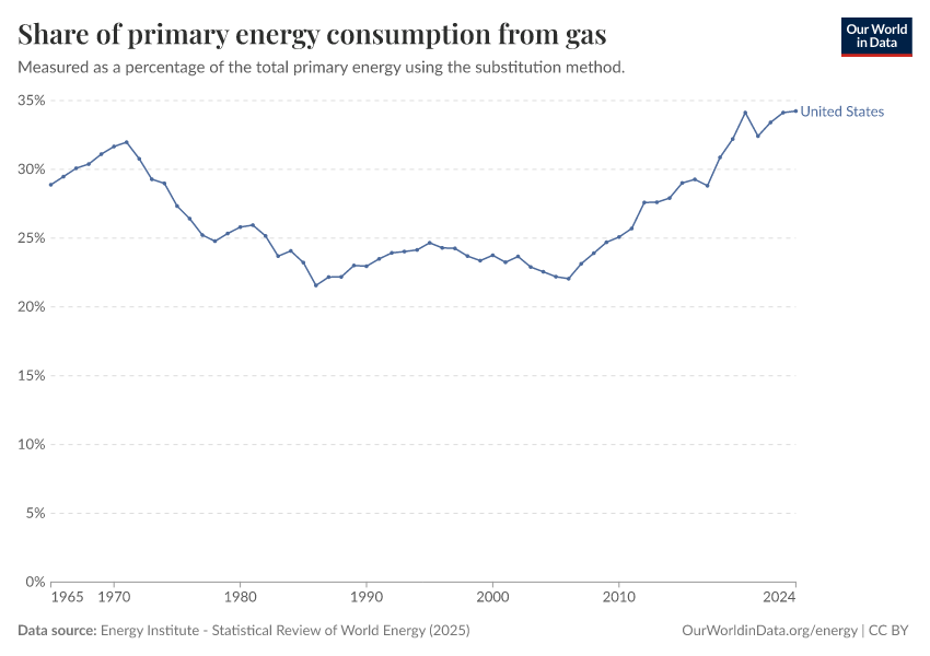 Energy Institute - Statistical Review of World Energy (2025) – with major processing by Our World in Data. “Share of primary energy consumption that comes from gas – Using the substitution method” [dataset]. Energy Institute, “Statistical Review of World Energy” [original data]. Retrieved March 12, 2026 from https://bespoke-income-plots.owid.pages.dev/grapher/gas-share-energy