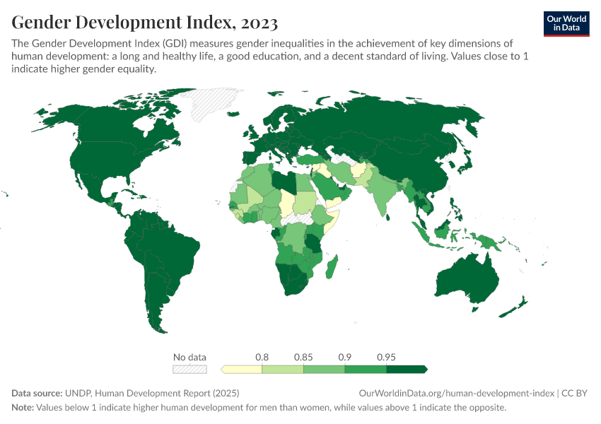 “Data Page: Gender Development Index”. Our World in Data (2026). Data adapted from UNDP, Human Development Report. Retrieved from https://bespoke-income-plots.owid.pages.dev/grapher/gender-development-index [online resource]How to cite this data