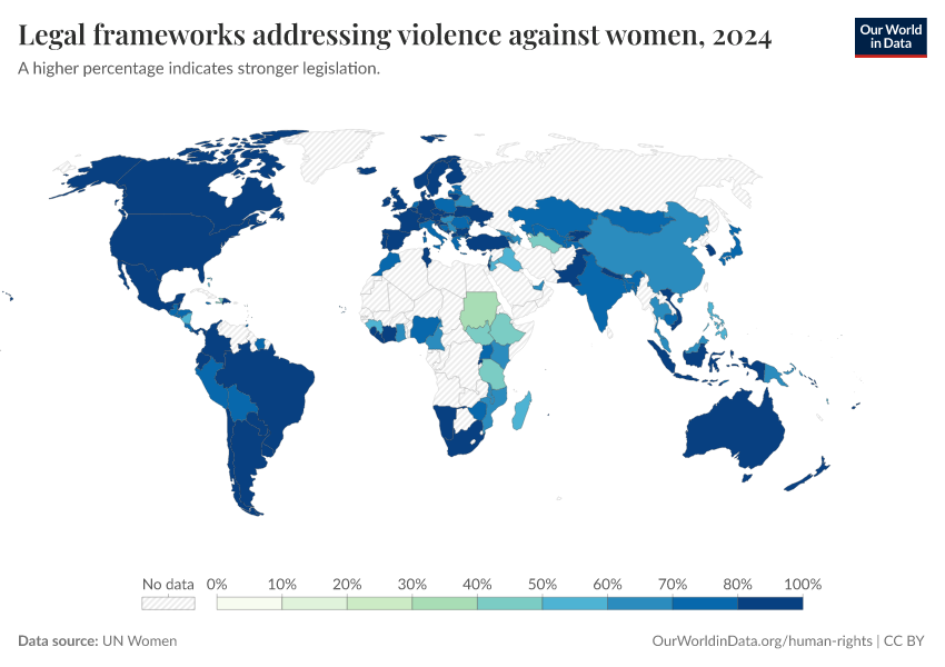 “Data Page: Legal frameworks addressing violence against women”. Our World in Data (2026). Data adapted from UN Women. Retrieved from https://bespoke-income-plots.owid.pages.dev/grapher/legal-frameworks-regarding-violence-against-women [online resource]How to cite this data