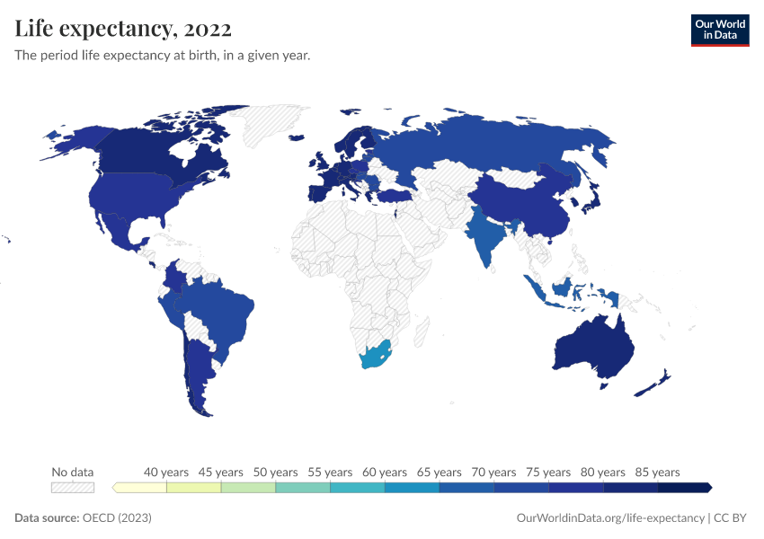 “Data Page: Life expectancy at birth”, part of the following publication: Saloni Dattani, Lucas Rodés-Guirao, Hannah Ritchie, Esteban Ortiz-Ospina, and Max Roser (2023) - “Life Expectancy”. Data adapted from OECD. Retrieved from https://bespoke-income-plots.owid.pages.dev/grapher/life-expectancy-at-birth-oecd [online resource]How to cite this data