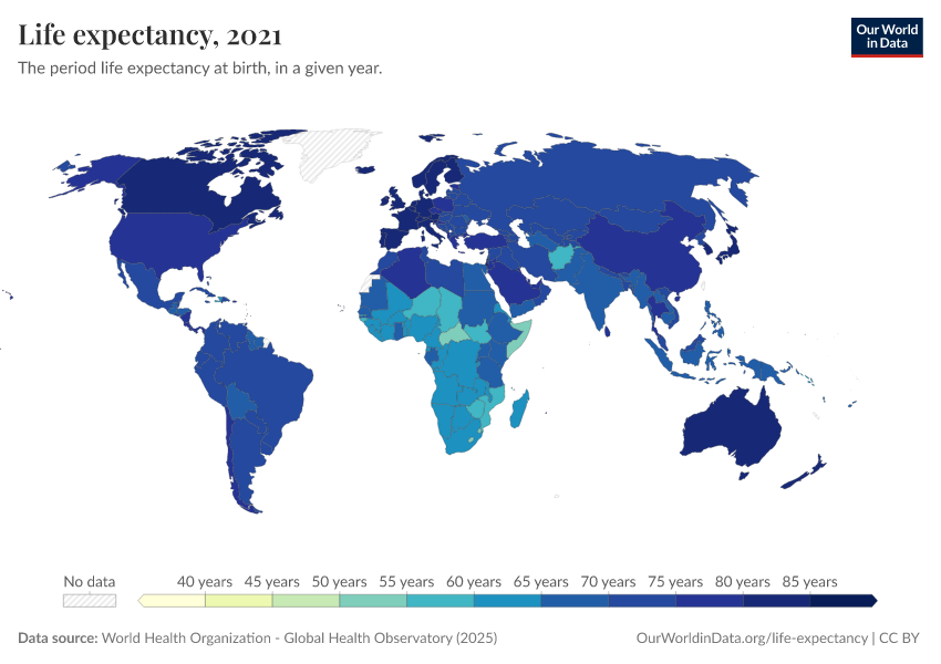 “Data Page: Life expectancy”. Our World in Data (2026). Data adapted from World Health Organization. Retrieved from https://bespoke-income-plots.owid.pages.dev/grapher/life-expectancy-at-birth-who-gho [online resource]How to cite this data