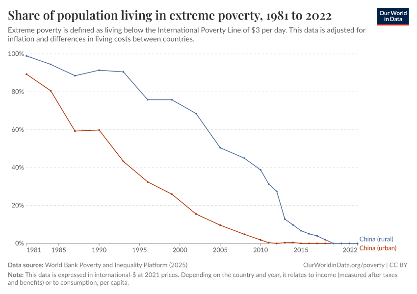 World Bank Poverty and Inequality Platform (2025) – with major processing by Our World in Data. “Share of population living in extreme poverty – World Bank” [dataset]. World Bank Poverty and Inequality Platform, “World Bank Poverty and Inequality Platform (PIP) 20250930_2021, 20250930_2017” [original data]. Retrieved March 12, 2026 from https://bespoke-income-plots.owid.pages.dev/grapher/share-of-population-in-extreme-poverty