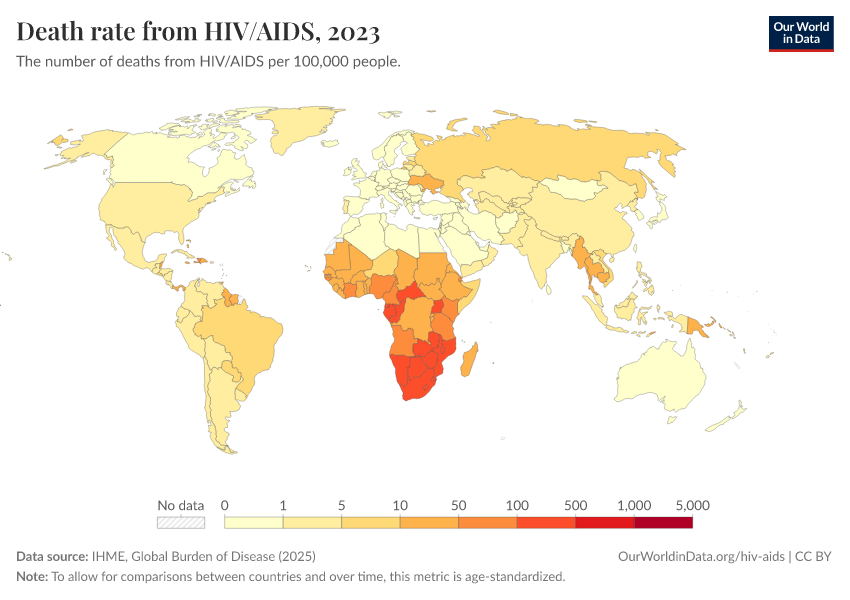 Max Roser and Hannah Ritchie (2023) - “HIV / AIDS” Published online at OurWorldinData.org. Retrieved from: 'https://bespoke-income-plots.owid.pages.dev/hiv-aids' [Online Resource]BibTeX citation