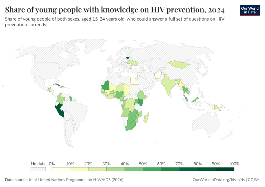 There are differences in the prevalence of HIV and death rates from AIDS between men and women. The chart shows the share of women in populations living with HIV.