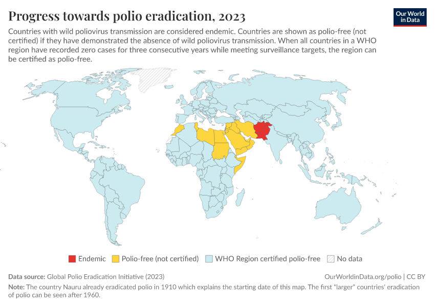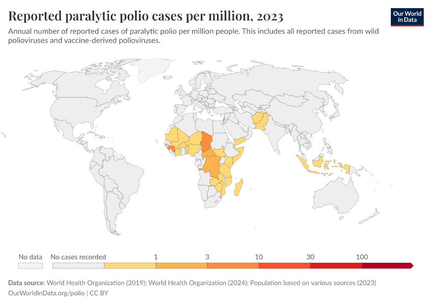 Saloni Dattani, Fiona Spooner, Sophie Ochmann, and Max Roser (2022) - “Polio” Published online at OurWorldinData.org. Retrieved from: 'https://bespoke-income-plots.owid.pages.dev/polio' [Online Resource]BibTeX citation