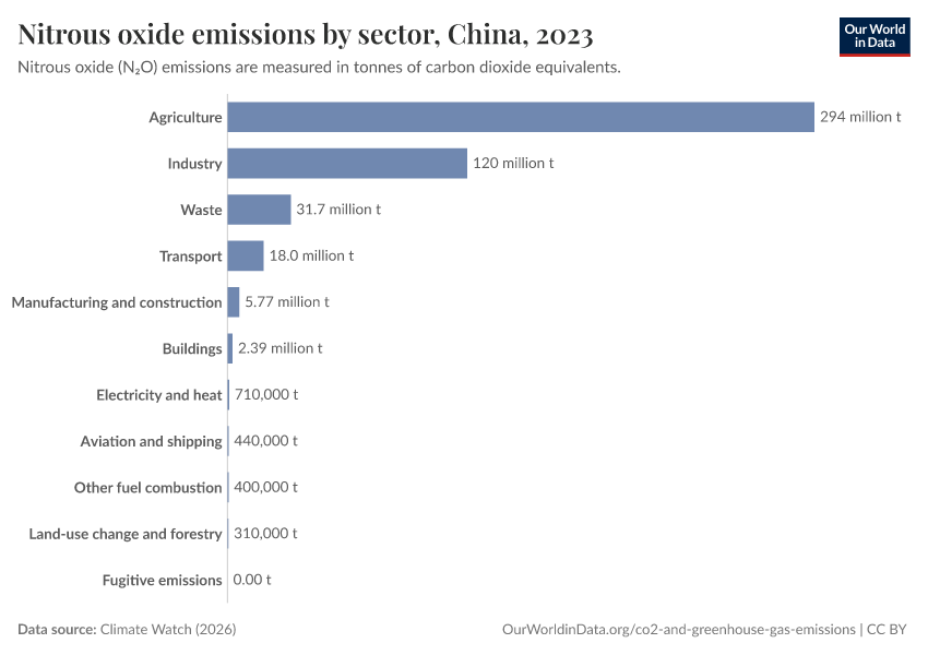 Nitrous oxide: how much does the average person in China emit? Where do emissions come from?