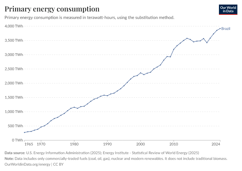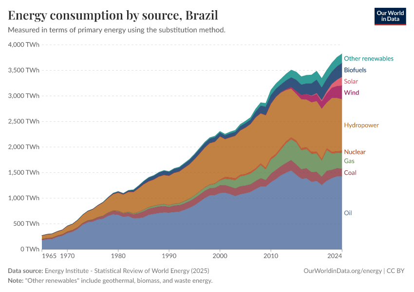 Hannah Ritchie and Pablo Rosado (2025) - “Energy” Published online at OurWorldinData.org. Retrieved from: 'https://bespoke-income-plots.owid.pages.dev/profile/energy/brazil' [Online Resource]BibTeX citation