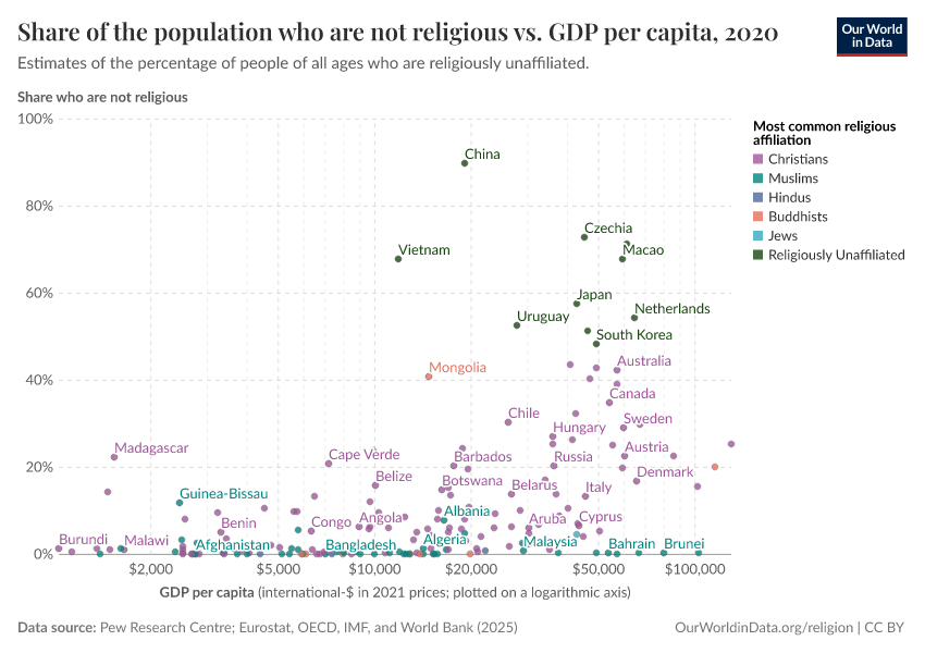Hannah Ritchie, Lucas Rodés-Guirao, Pablo Arriagada, and Esteban Ortiz-Ospina (2026) - “Religion” Published online at OurWorldinData.org. Retrieved from: 'https://bespoke-income-plots.owid.pages.dev/religion' [Online Resource]BibTeX citation