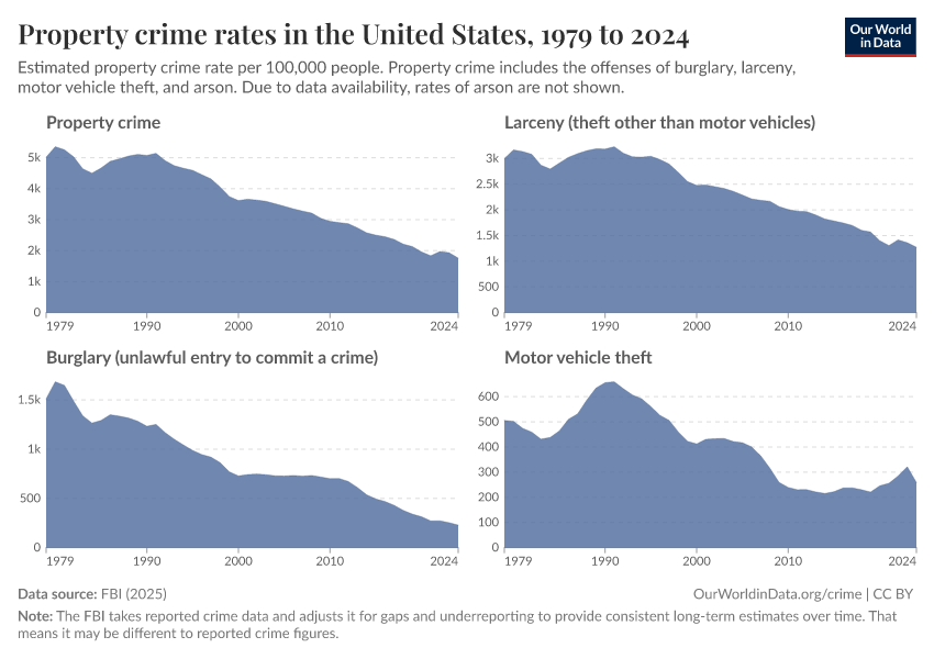 Hannah Ritchie and Fiona Spooner (2026) - “How have crime rates in the United States changed over the last 50 years?” Published online at OurWorldinData.org. Retrieved from: 'https://bespoke-income-plots.owid.pages.dev/us-crime-rates' [Online Resource]BibTeX citation